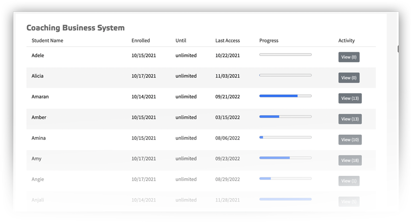 Easily coach your participants and hold them accountable with participation monitoring and direct access to participant feedback and interaction. No one will slip through the cracks, no matter how many clients or courses you have.