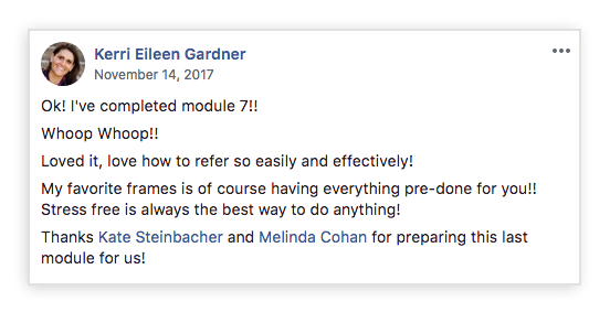 Thanks to the Module Clinic Calls, the Group Coaching, your Bootcamp Coach, and the Facebook group, you can rest assured you'll have all the support you need as you learn and digest this new information, and as you begin to implement it in your own business.